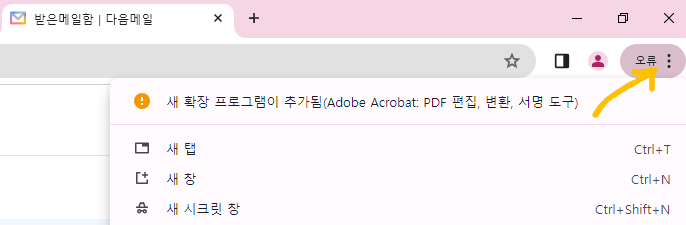 일단 이 방법은 크롬 브라우저를 쓰시는 분에게만 해당되는데요. 이제는 internet explore도 서비스가 종료되었으니 대부분이 이걸 쓰실거라고 가정하고 이야기를 진행하겠습니다. 먼제 우측 상단에 점 세개 표시를 클릭해보십시오.