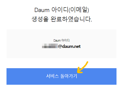 자신이 한메일 바로가기 www.hanmail.net 에서 이용하고 싶은 아이디를 만드신 후 확인을 눌러주세요. 다만 유의해야할 점은 이제는 한메일 도메인을 새로 생성할 수 없기때문에 @daum.net으로 통일된다는 사실은 꼭 유의해주시면 좋겠네요. 생성 완료가 되었다면 "서비스 돌아가기"를 눌러주시기 바랍니다.