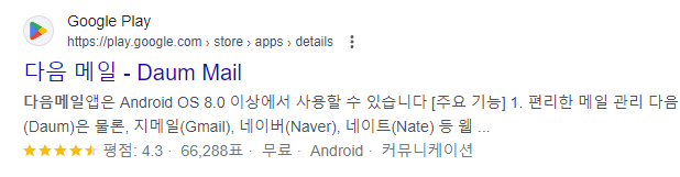 참고로 여러분들 휴대폰 굉장히 많이 사용하시죠? 요즘 시대에 스마트폰을 사용 안하시는 분들이 거의 없다고 해도 과언이 아닐텐데요. 그런 분들에게는 한메일 바로가기 www.hanmail.net 을 매우 쉽게 할 수 있는 어플이 나와있습니다. 다음 메일이라는 앱을 설치하시고 로그인을 해두면 너무 쉽게 이메일 확인이 가능하죠. 심지어 휴대폰을 사용하는 동안 한메일이 날아오면 수신 알림도 되니까 정말 유용하고 편리할 것입니다. 다들 이용해보시기 바랍니다.